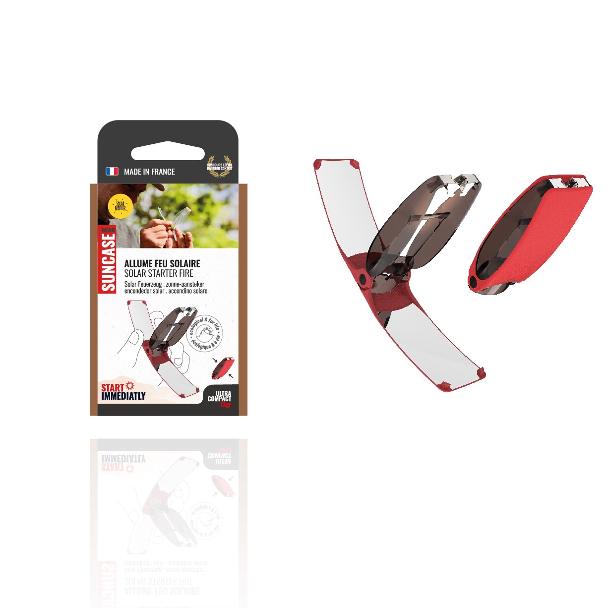 Le briquet solaire SUNCASE déploie ses ailes et concentre les rayons du soleil en un point focal pour un allumage en 3 secondes : bois, papier brun, tabac ,encens (…). Son étui donne des ailes à votre briquet pour un allumage 24/24h et prolonge sa durée d’utilisation.