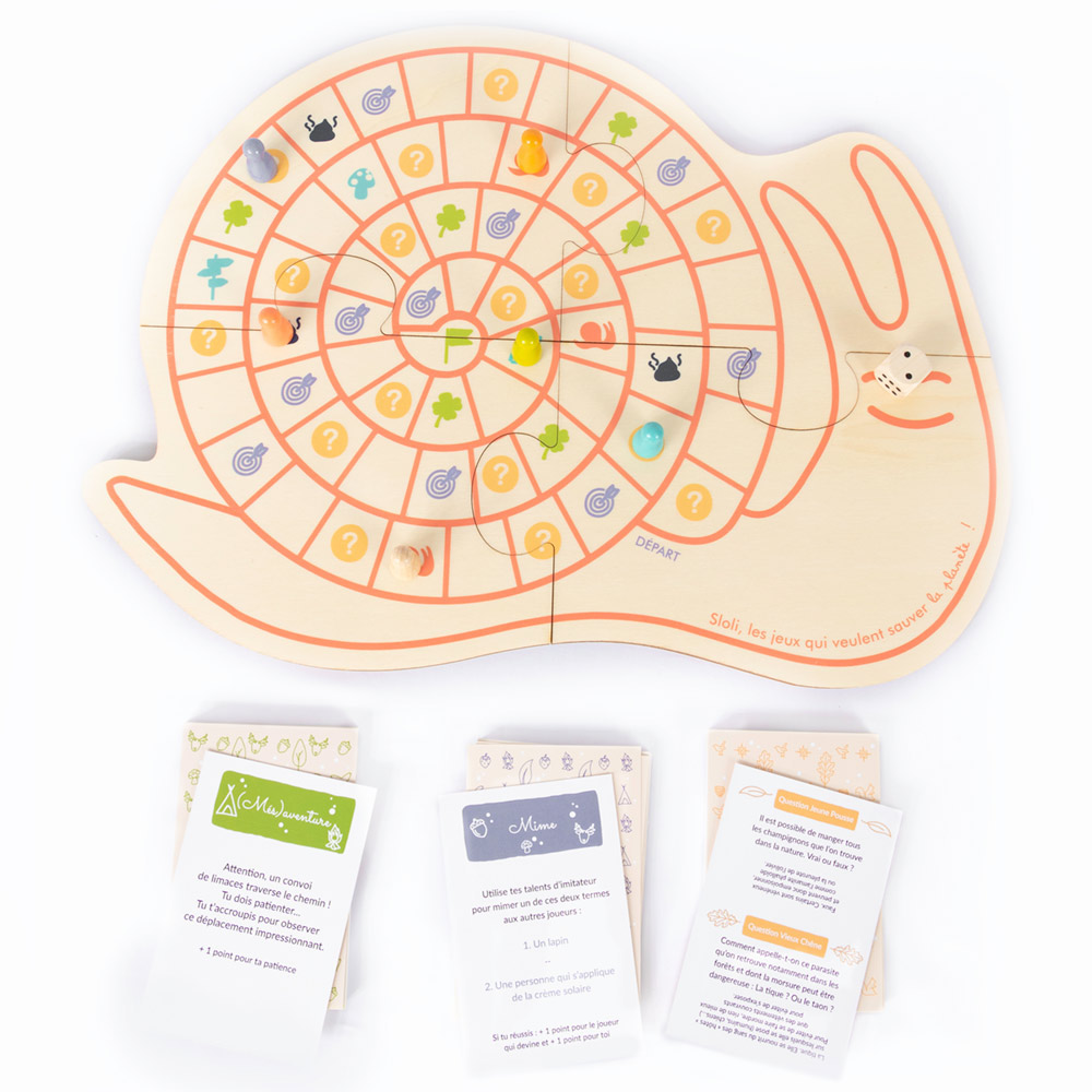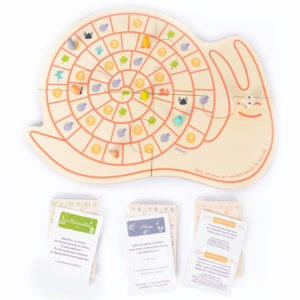 La rando de l’escargot réinvente le traditionnel et indémodable jeu de l’oie en bois. Le résultat donne un savoureux mélange de hasard, stratégie et connaissances. Et un très beau design, avec ce charmant plateau et ces pions produits en bois du Jura. De grands moments de partage et de rire en famille grâce à ce jeu de l’oie en bois original et interactif. Il risque de donner très envie à chaque joueur (enfants comme adultes) de partir en excursion dans la nature !