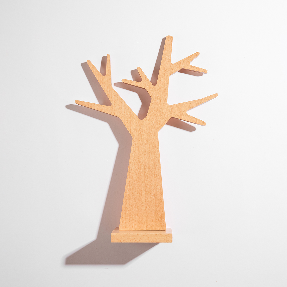 Accueillant parmi ses branches vos précieux bijoux, cet arbre transformera vos rituels matinaux en balades oniriques. Fabriqué en France à partir de médium plaqué hêtre et de hêtre massif issus de forêts gérées durablement.
