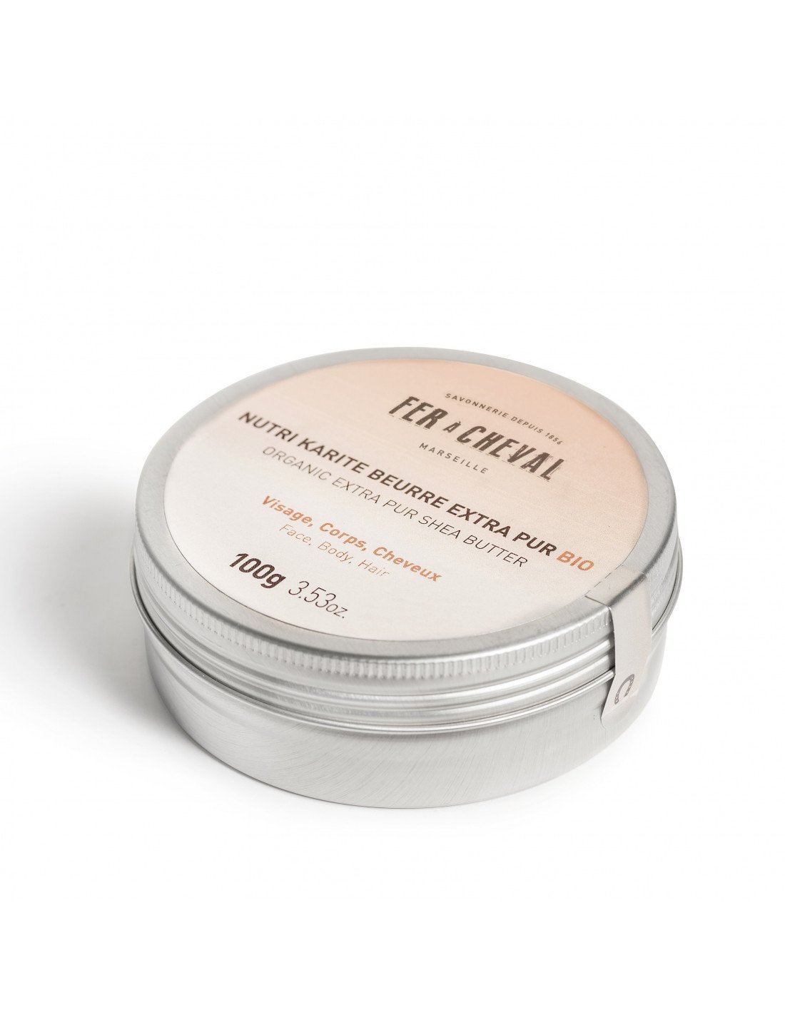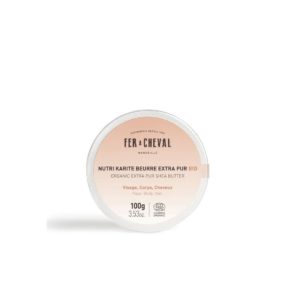 Sans parfum, colorant ou conservateur, Nutri Karité Beurre Extra Pur BIO du Fer à Cheval est à utiliser sur vos cheveux, et votre peau (visage & corps). Le beurre de karité est reconnu pour ses vertus nourrissantes, réparatrices et apaisantes. Composition : Beurre extra pur bio*, sans parfum, colorant ou conservateur. *Ingrédient issu de l’agriculture biologique.