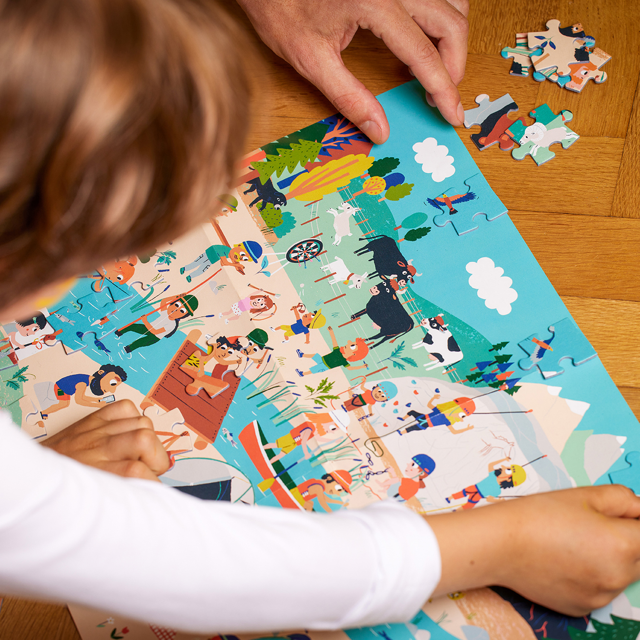 Dans ce puzzle, l’enfant va travailler son sens de l’observation et découvrir la vie au temps de la Préhistoire de façon pédagogique.