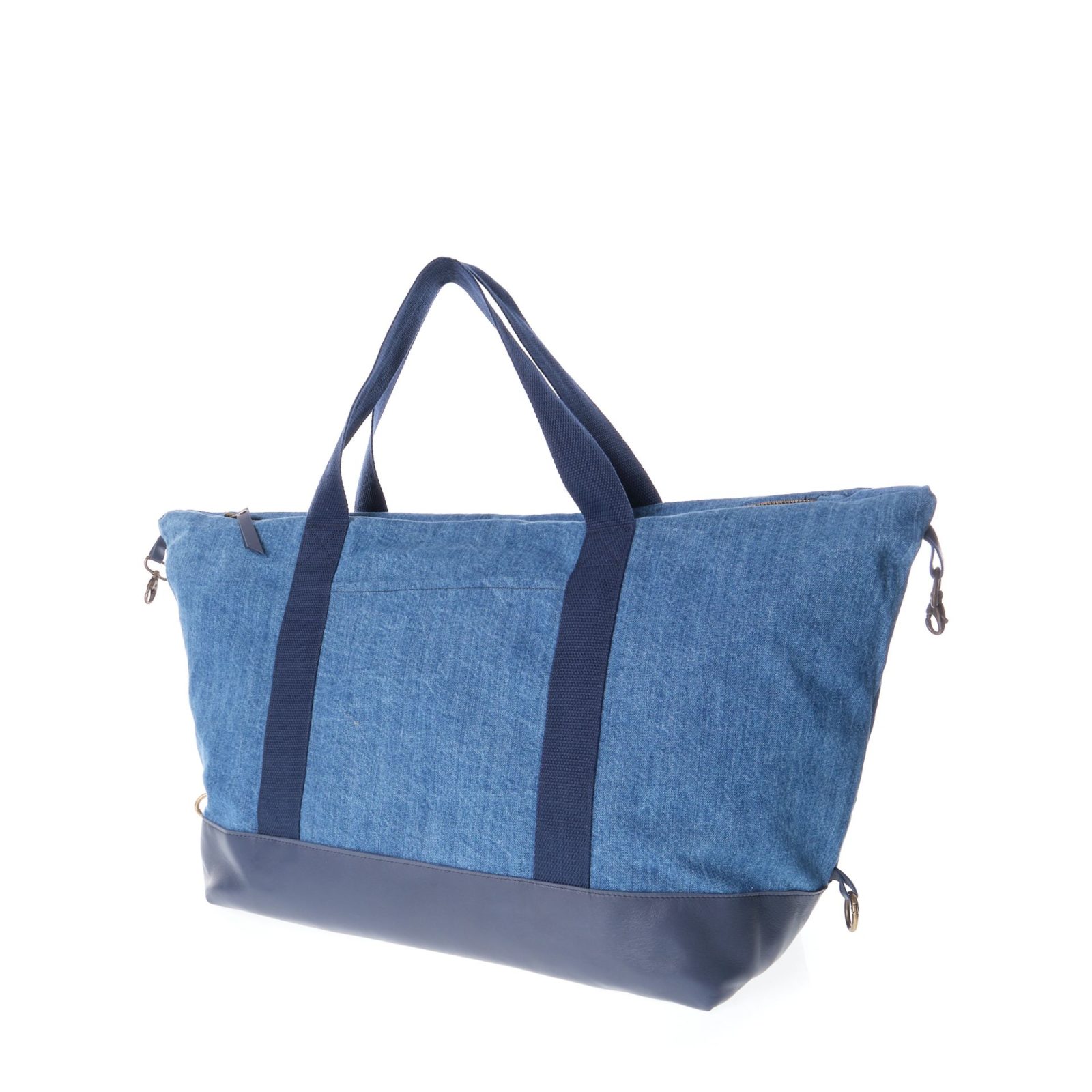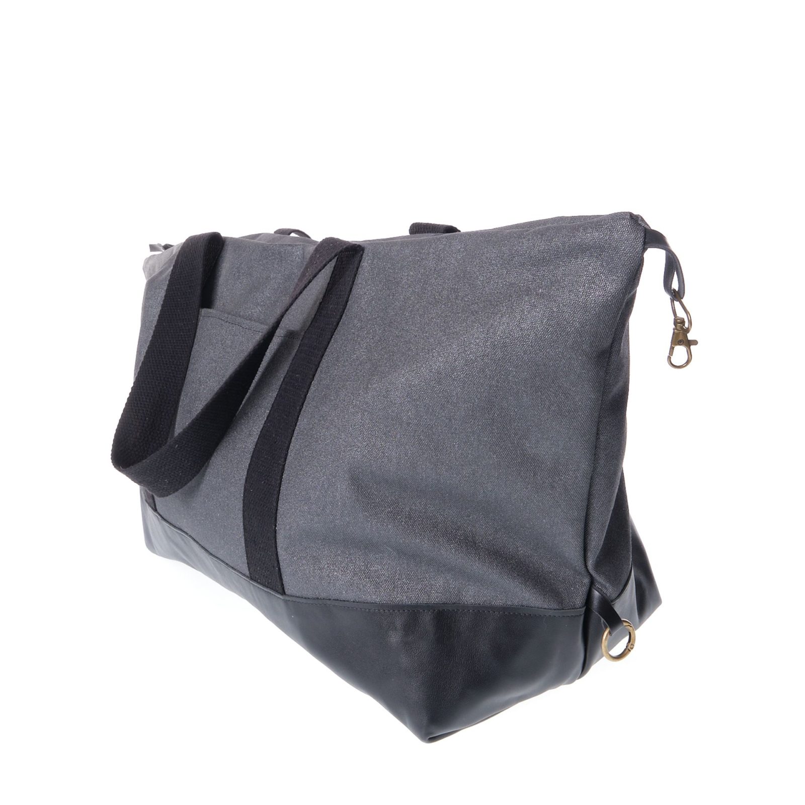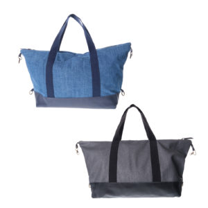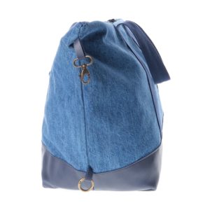 Il existe en cuir bleu marine et jean ou en cuir noir et toile gris foncé, légèrement scintillante.