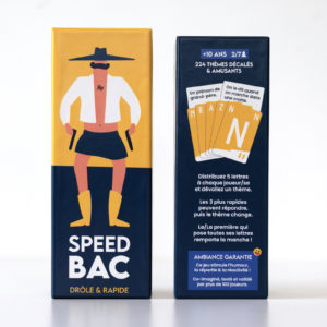 Speedbac est un jeu d’ambiance simple, rapide et terriblement efficace ! Un dérivé du petit bac, SAUF QUE : les thèmes sont drôles et décalés, vous devez répondre plus rapidement que les autres joueurs pour vous débarrasser de vos lettres !